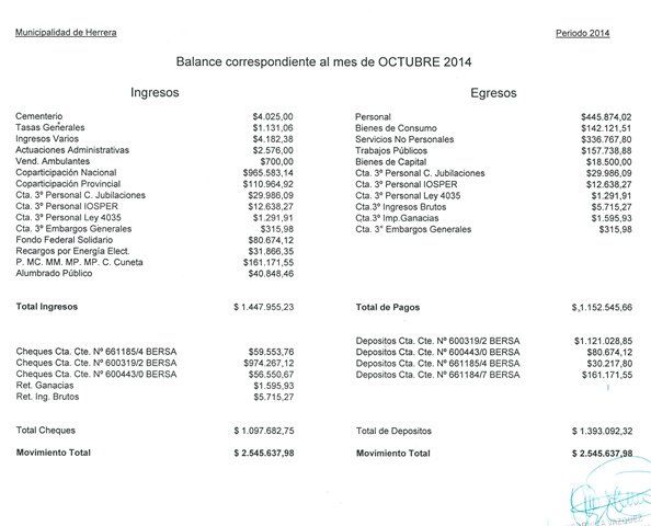 Balance Octubre 2014